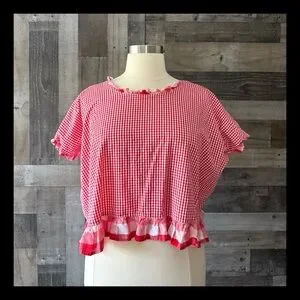 Handmade red gingham top charming ruffle trim in red and white plaid. Oversized Gingham Prairie Penny Lane Festival Boho Garden Party Cottagecore. It is handmade!
