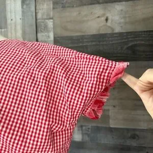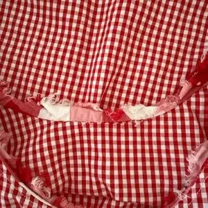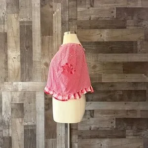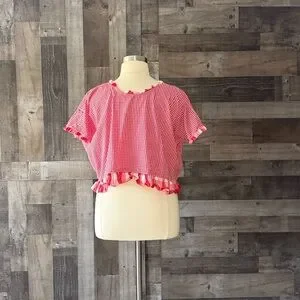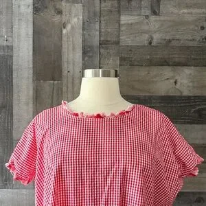 Handmade red gingham plaid ruffle trim top large festival boho garden party