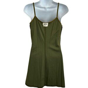 Vintage 90s Y2K Byer Too Babydoll Slip Dress Green FLoral L Boho Milkmaid Fairy