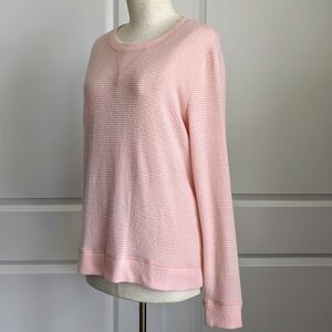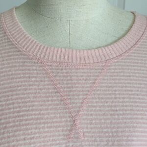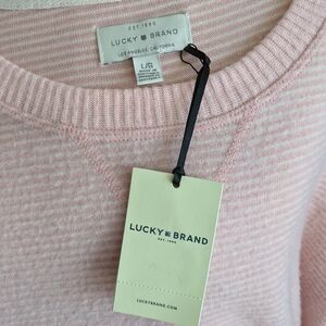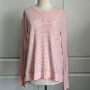 Lucky Brand Pullover Brushed Knit Crew Neck Long Sleeve Striped Pink White L NWT
