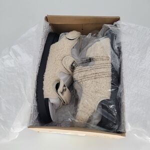 STEVE Madden Margie flat sandals with buckles in cream faux sherpa quilt size 8