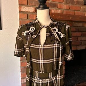 Anthropologie Ranna Gill Olivia Plaid Dress in Olive Green Sz S