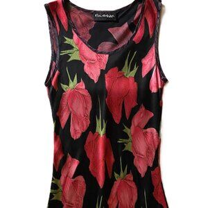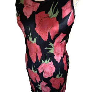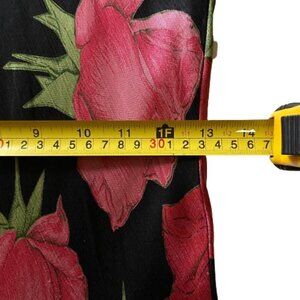 Black with a large roses/flowers print in pink/red