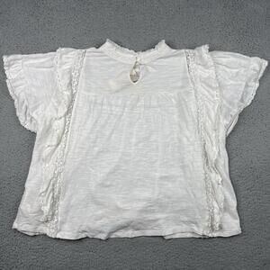 Free People Top Womens Large White Ruffle Cottage Core Baby Doll Boho Y2K NWT
