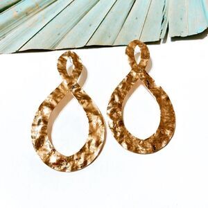 Textured geo water drop dangle stud earrings in gold tone