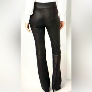 A flattering silhouette in one of WHBM’s best-selling fabrics! Featuring a high rise waistband and a full length flared hem. It’s made with a touch of stretch for all-day comfort. Pull-on styling for a sleek fit. 11” rise, 31” waist, 32” inseam. Bottom of flare is 9” wide. Size 10.
