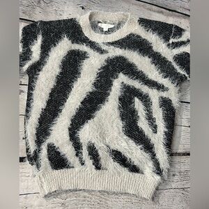 Jessica Simpson Fuzzy Black and Cream Sweater