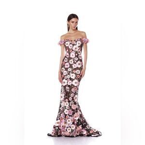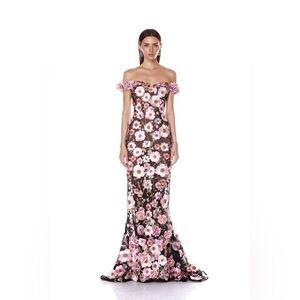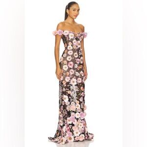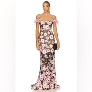 NWOT Bronx and Banco Jasmine Black Multi Off Shoulder Gown
