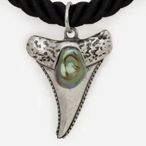 This striking black and silver shark tooth pendant necklace adds a bold touch to any outfit. Perfect for making a statement, this piece is a must-have for your jewelry collection.