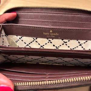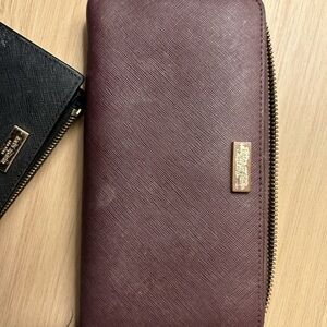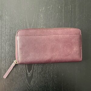 Beautiful travel wallet in deep plum color. It has lot of compartments for your bill, passport, ID, coins and credit cards.