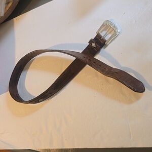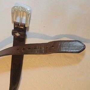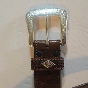 Mens Brown Premium Leather Woven Silver western and Silver Buckle Belt Sz.L/XL