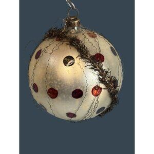 Vintage Germany Wire Wrapped Frosted White Glass Confetti Dot Ornament 2 1/2"