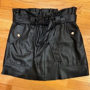 Zara Black Faux Leather Mini Skirt with Tie Belt