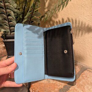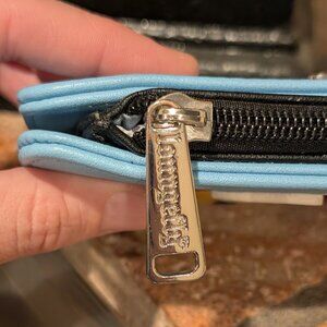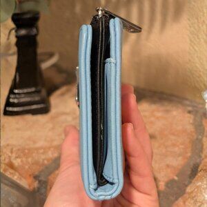 Adorable Loungefly x Disney Parks wallet featuring classic Disney dogs (Pluto + friends) on a light blue faux leather exterior. Excellent condition—no signs of wear or use. Clean inside and out.