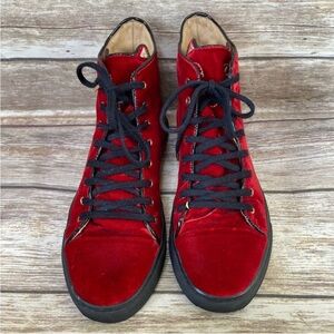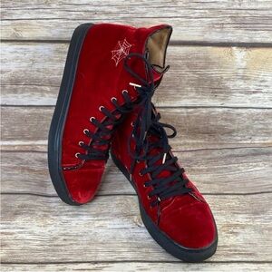 🐾✨ CHARLOTTE OLYMPIA “Purrfect” Red Velvet High-Top Sneakers – Size 8.5 ✨🐾