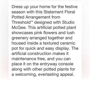 NWT Threshold with Studio McGee Pink Floral Arrangement in Vase