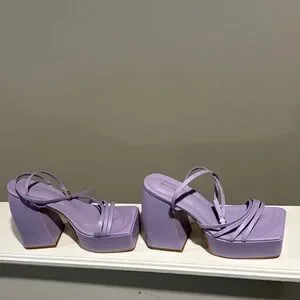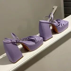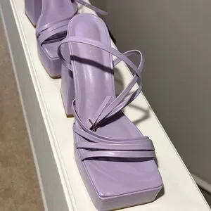 Elevate your style with PrettyLittleThing's purple platform sandals, featuring a chic monochromatic design and a modern ruched strap detail. These shoes combine a chunky platform sole with a moderate heel height, offering both comfort and a fashion-forward look. Perfect for making a statement, they are a must-have addition to any wardrobe.