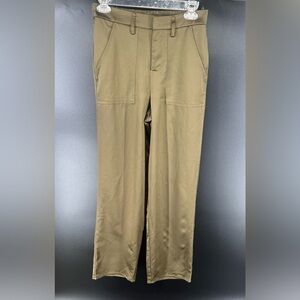 Joie olive green satin wide leg high rise pants silky size S Small with pockets