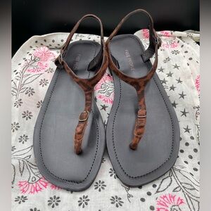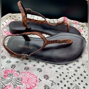 FREE PEOPLE Mika Footbed Sandals with Leopard Print Straps. Size 6
