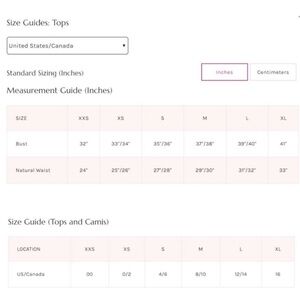 Measurements for size Small: