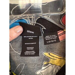 Disney Characters All Over Print Black Short Sleeve Button Down Shirt Large