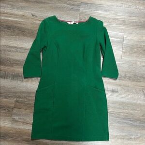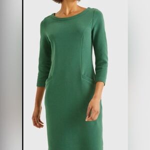 Chic and timeless kelly green dress with 3/4 length sleeves. Perfect for versatile styling and transitioning into spring.