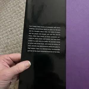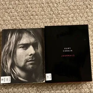 Kurt Cobain Journals book set. The one book is copies of actual notes from his personal journal; it is really cool. The other one is a soft cover packed with a bunch of information about Kurt and Nirvana. Both of these books are really interesting if you are interested in Kurt Cobain. The Goodwill stickers were on there when I bought them elsewhere. The first book with the black cover is in very good shape. The second soft cover book is in good shape. Please make an offer if you are interested.