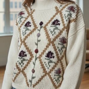 Vintage Cream Mock Neck Cottage Core Coastal Grandmother Sweater Sz Large