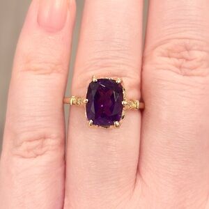 14K Amethyst Diamond Solitaire Ring: Dark Cushion Cut Elegant Milgrain Size 6.5