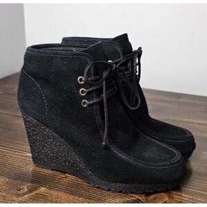 MICHAEL Michael Kors Sz. 7.5 Rory Lace Up Wedge Booties Ankle Boots Suede Black