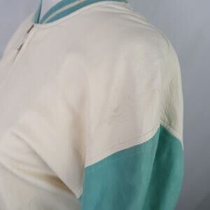 Vintage 90s Nancy Heller Cream and Turquoise Leather Bomber Jacket 2