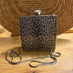 In great condition. Stylish leopard print evening clutch with a chic silver chain. Perfect for adding a touch of elegance to any outfit.