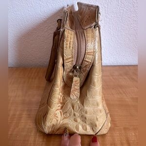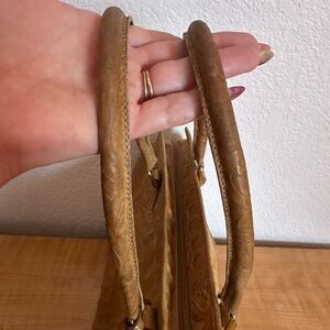 Brahmin Vintage Rare Floral Hand Tooled Tan Leather Handbag