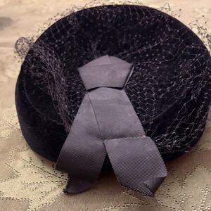 Chic and sophisticated, this black vintage veiled hat adds a touch of elegance to any outfit. Perfect for special occasions. Lace damaged please see pictures. Can be removed or replaced or use lace as is for that vintage look