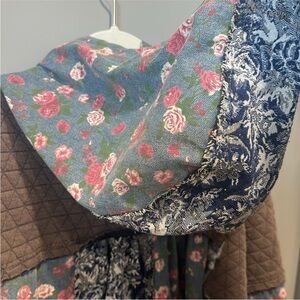 Charming blue jean jacket with floral print. Features a standout star patch. Ideal for a whimsical touch.