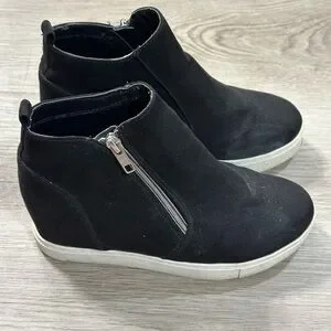 Steve MaddenTaylor Black Suede Bootie Sneaker Side Zippers Size 4