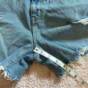 Worn once. Distressed high rise mom jeans shorts. Light wash.