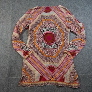 Athleta Swim Coverup Womens Small Silk Blend Long Sleeve Tunic Paisley Boho Pink