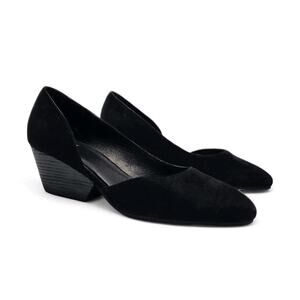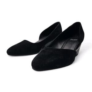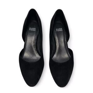 $350 EILEEN FISHER Lily Black Half D'Orsay Slip-On Wedge Pump Women's Size 9.5