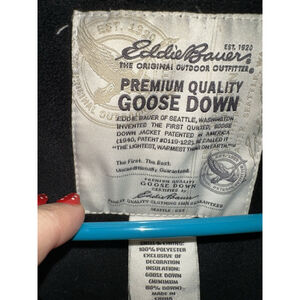 Eddie Bauer Women Large Puffer Goose Down Quilted Long Parka Jacket Coat Black