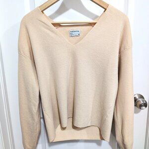 Frank And Oak Beige V-Neck Knit Sweater | Size M | Minimal Classic