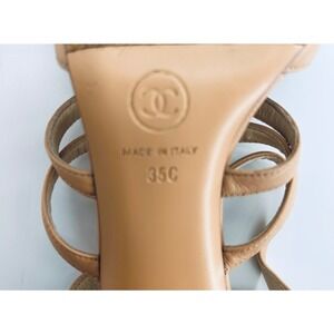 Chanel Beige Strappy Black Bow Faux Pearls Lambskin Leather EU 35 US 5 16P