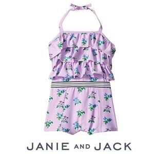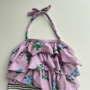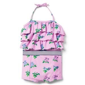 Janie and Jack Ruffle Halter Swimsuit Floral Stripe Retro 12-18 Months