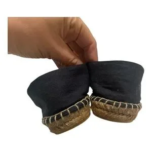 • Espadrille/jute soles show wear and some fraying (see close-up photos)