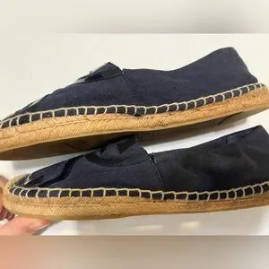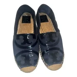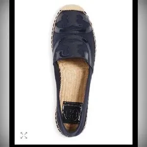 Tory Burch Poppy Espadrille Flats in classic navy blue with signature logo detail.