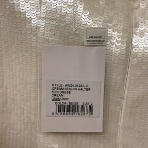 Self-Portrait Cream White Sequin Halter Mini Dress
