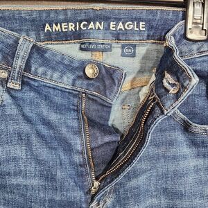 American Eagle Outfitters The Stacked jeans. Designed with a high waist and Next Level Stretch for comfort and flexibility. Features classic five-pocket styling with signature eagle stitching on the back pockets.