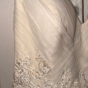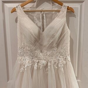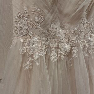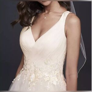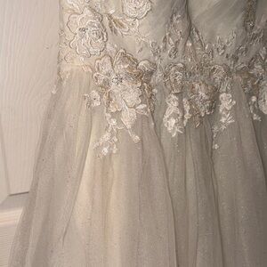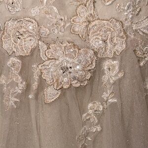 David’s Bridal Ivory/Champagne Appliqué Glitter Tulle A-Line Dress Style #WG3930