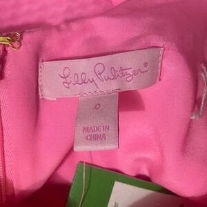 Keywords: Lilly Pulitzer dress, shift dress, pink dress, gold trim, embellished dress, designer dress, summer dress, vacation dress, resort wear, preppy, girly, party dress, cocktail dress