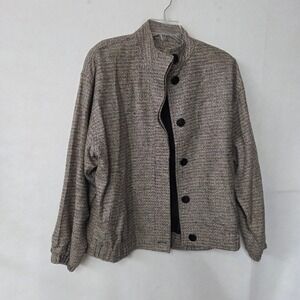 Doncaster Silk Tweed Bomber Jacket Women's Medium Button Front Stand Collar